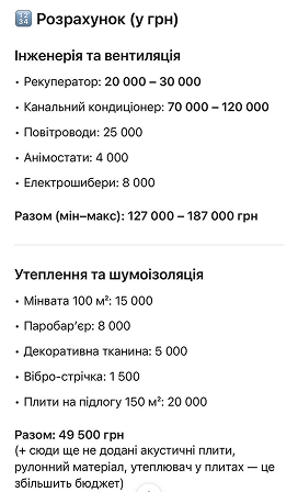 - Цільової підтримки окремих категорій (вентиляція, шумоізоляція, електрика, меблі тощо)
